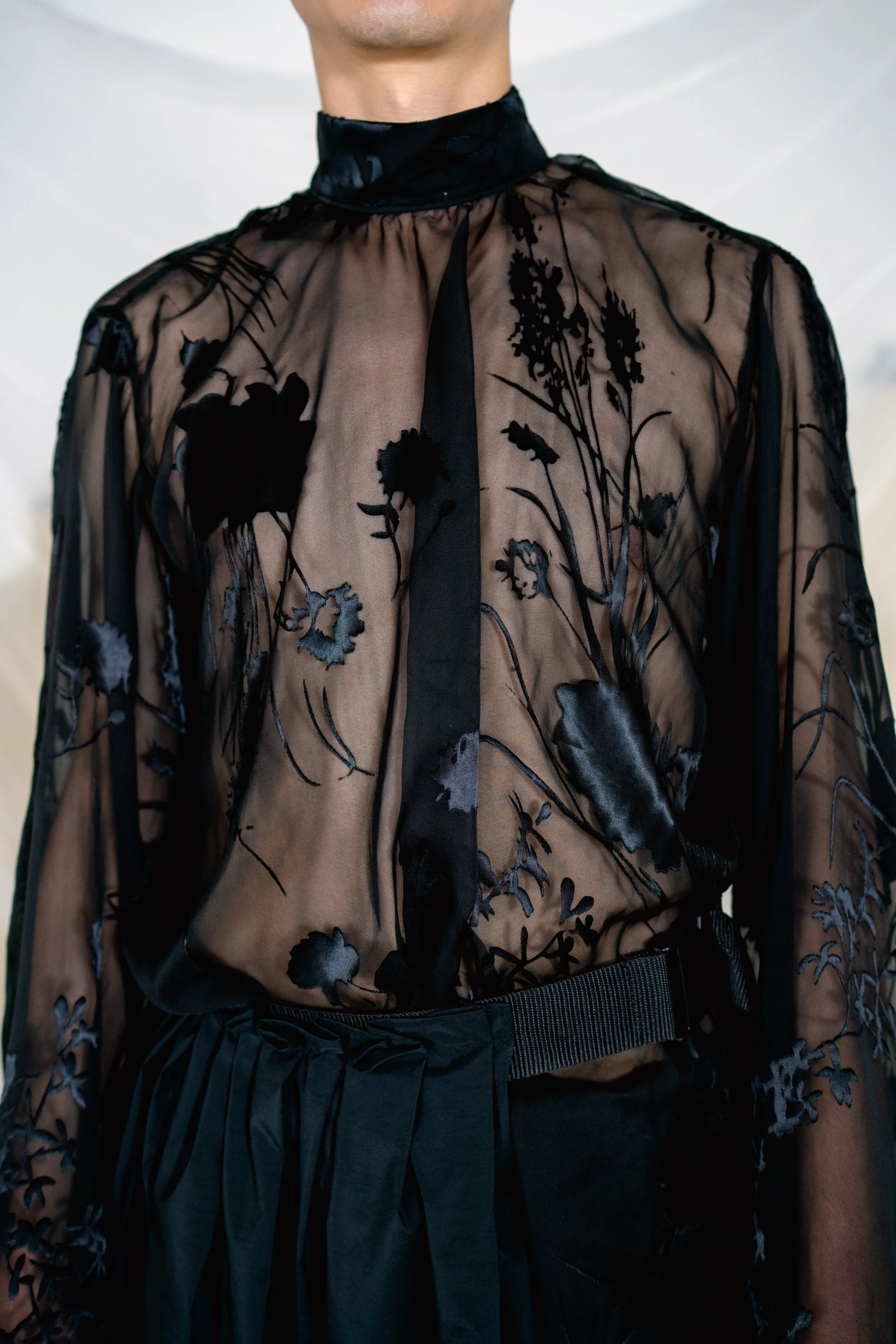 To accentuate this disparity, the collection utilises both natural translucent, lightweight sheers alongside synthetic water-resistant fabrics. This juxtaposition enables the notion of challenging the social constructs of gender in combination with the growth of mankind through technological means.